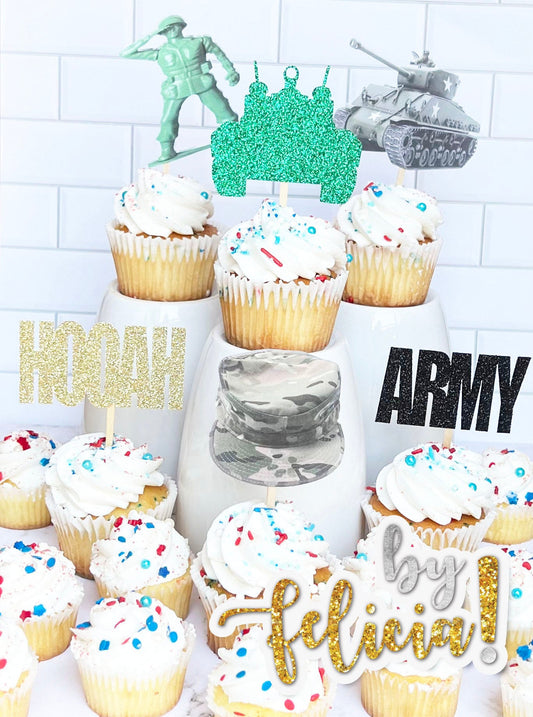 Army Cupcake Toppers, Army Cake Topper, Army Party Decorations, Army Going Away Party, Army Party Supplies, Army Birthday Party, Army Mom