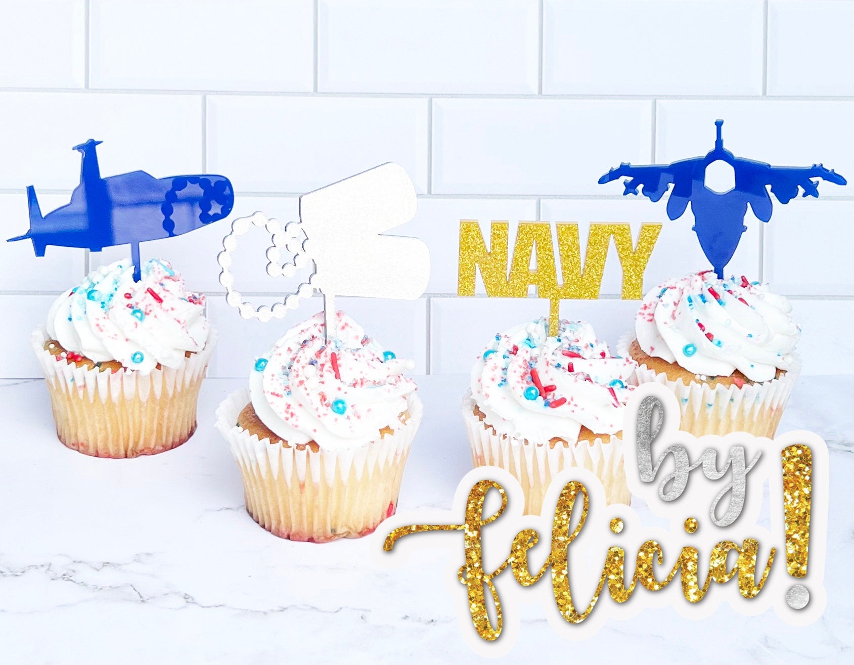This listing is for Navy cupcake toppers.