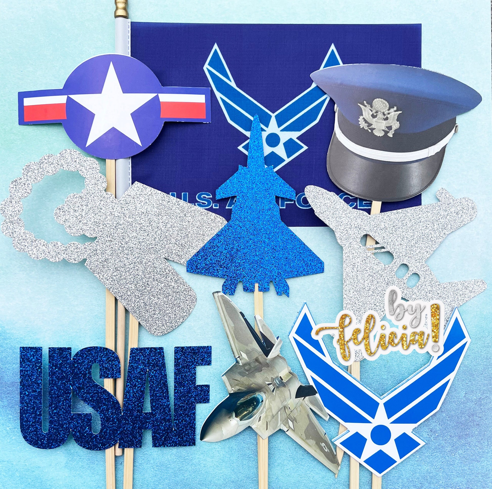 air force party decorations, air force party, air force party decor, air force graduation, air force centerpiece, air force cupcake topper, usaf