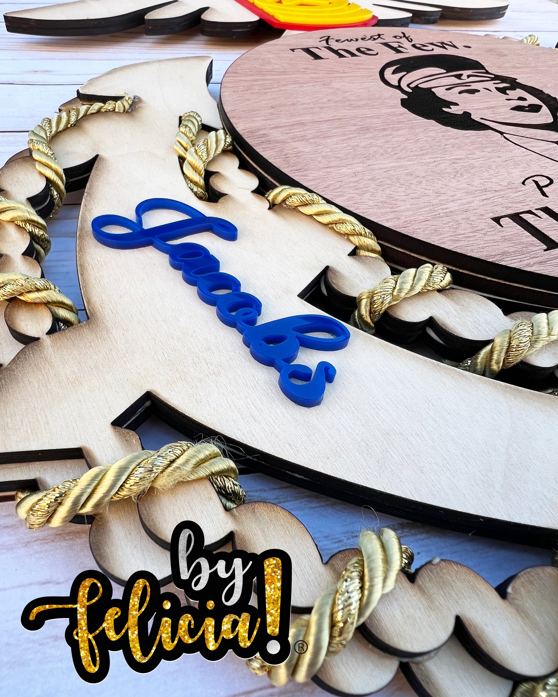 * Military ranks are laser cut from 1/8" acrylic, are glued together, and the colors vary depending on what military branch of service that you choose.