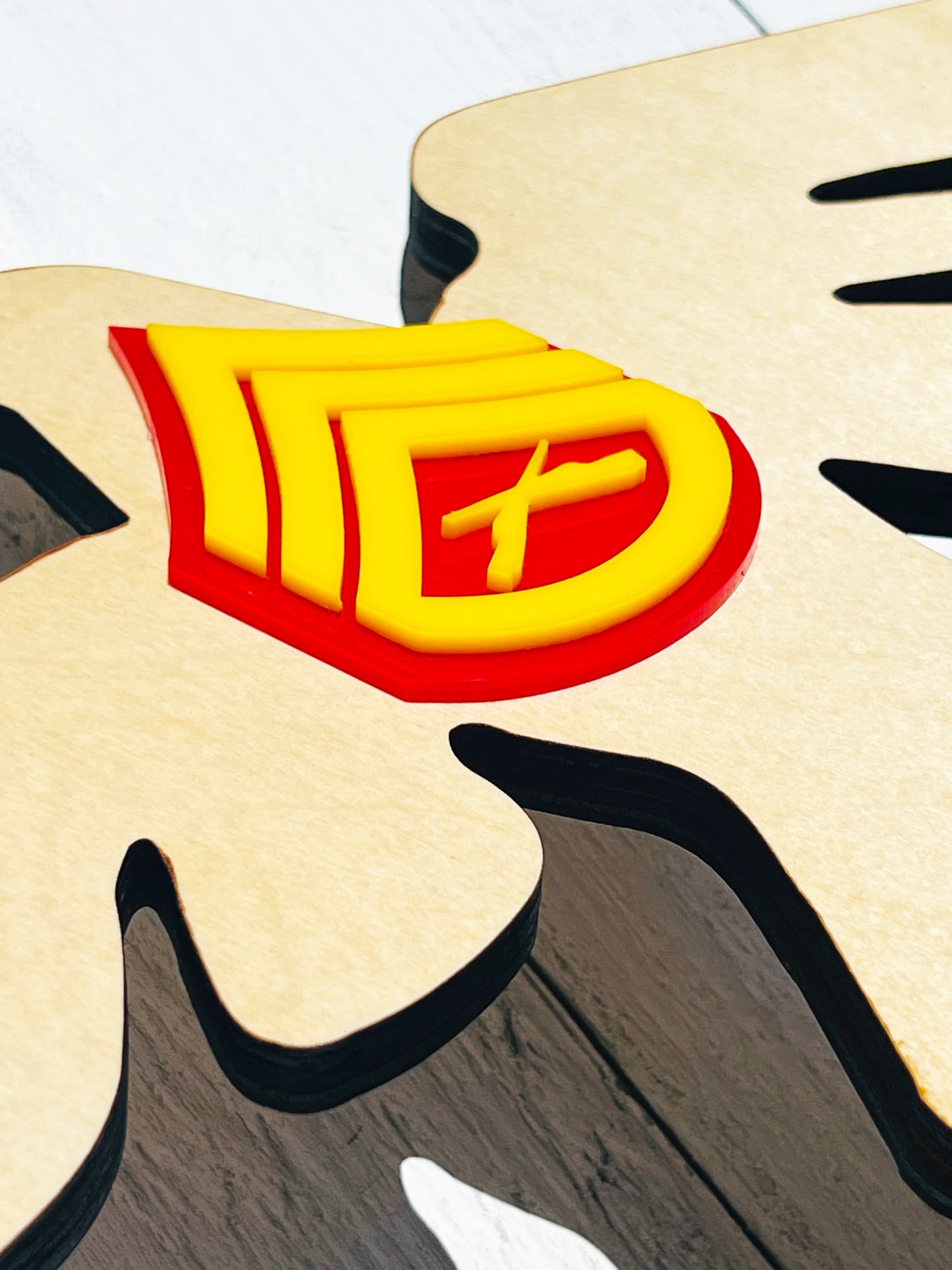 * Made from layered birch plywood, epoxy, acrylic, and high gloss sticker paper.