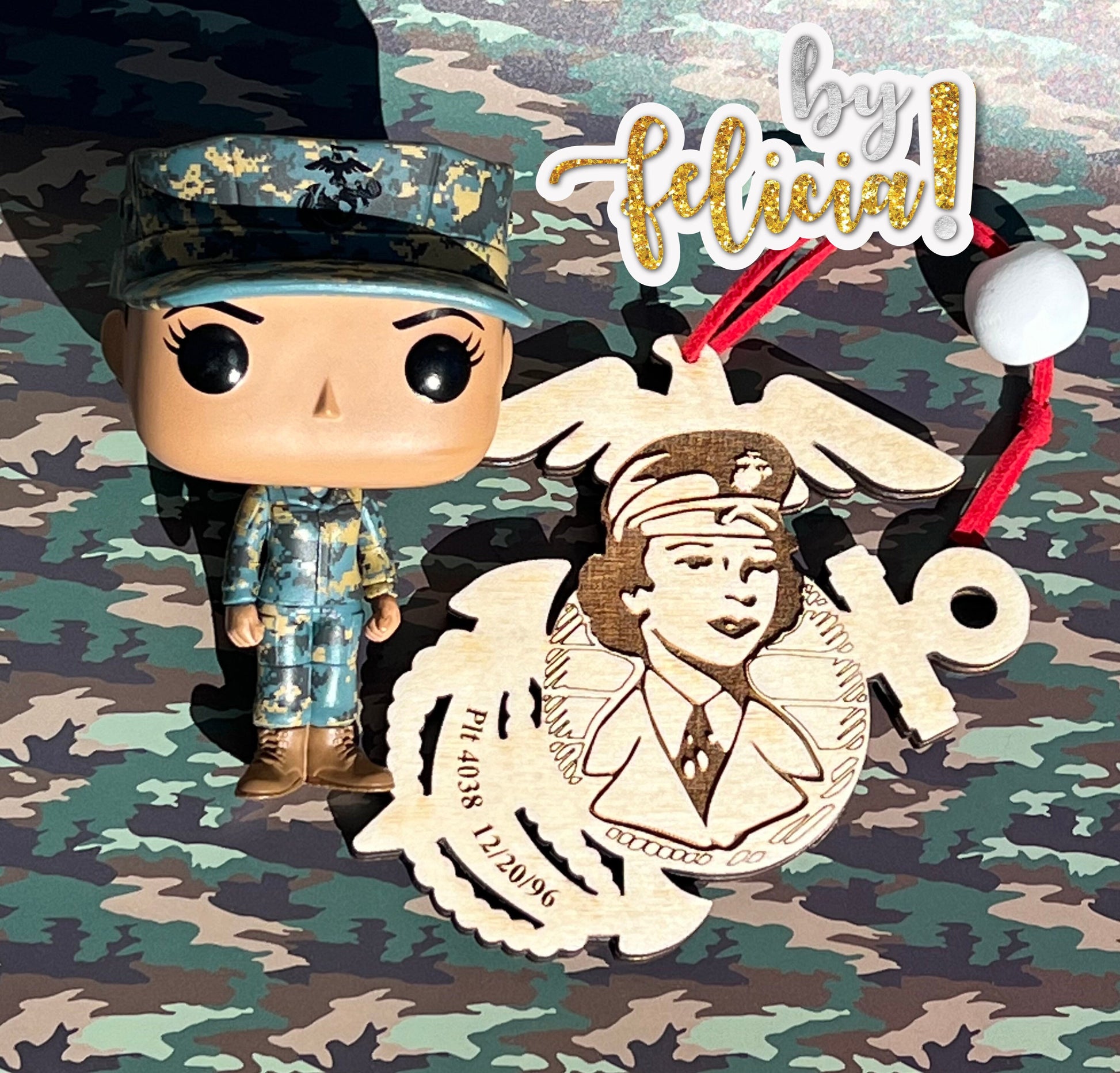This listing is for one wood ornament, with the Woman Marine logo laser engraved and laser cut onto an EGA & shipped to you with love!