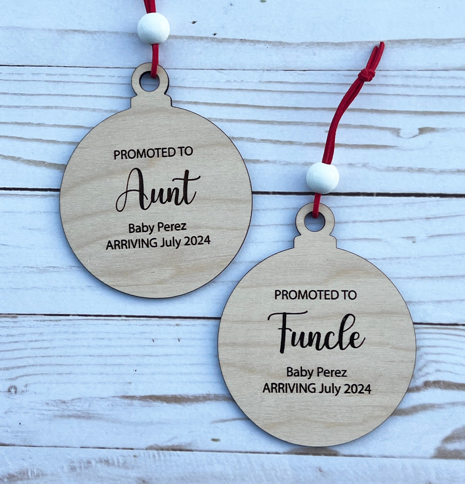 Personalized Pregnancy Announcement Christmas Ornament • Customized Ornament • Promoted to Aunt • Promoted to Funcle • Christmas Baby